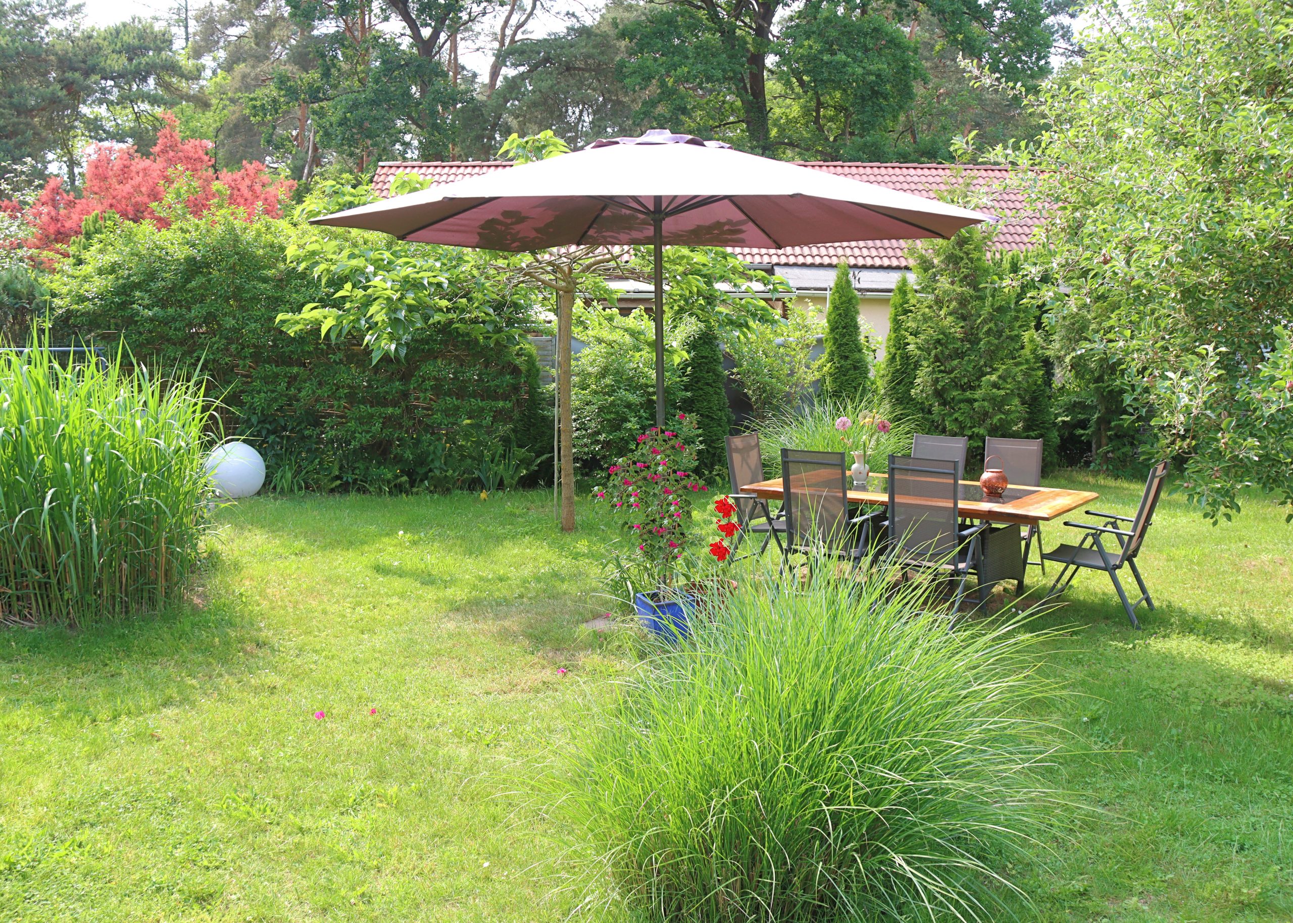 Blickdicht und eingezäunt mit gemütlichen Sitzecken