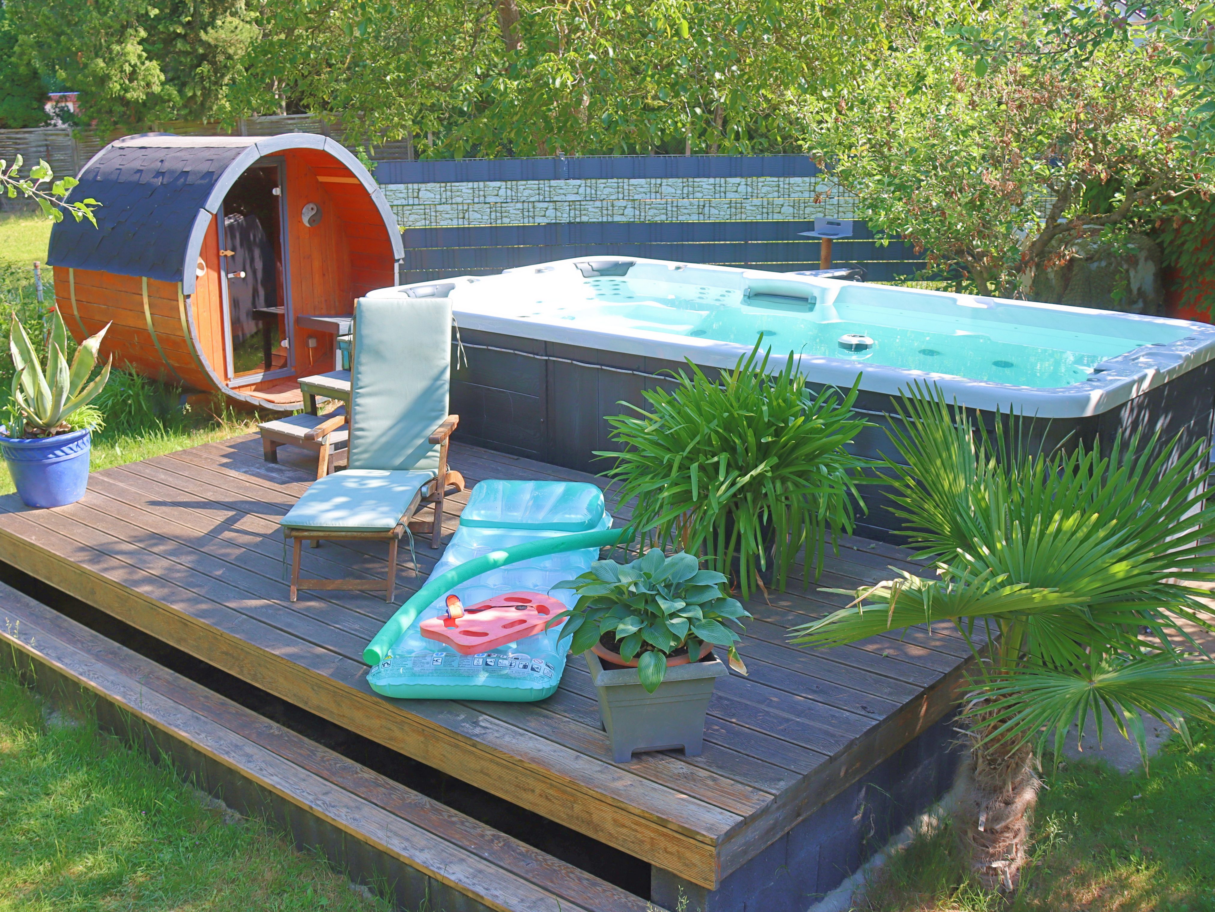 Ein Pool / Whirlpool für 6 mit Gegenstromanlage und stimmungsvoller Unterwasserbeleuchtung kann zusätzlich gebucht werden. ( ganzjährig bis 34 Grad beheizt )