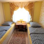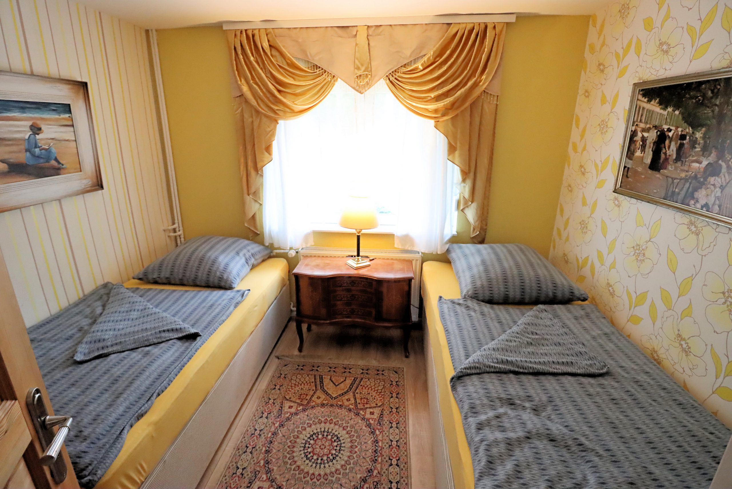 Es gibt 3 gemütliche Doppelzimmer mit 6 Boxspring-Einzelbetten,