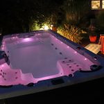 Alle Poolfunktionen wie das Heizen bis 34 Grad, 6 Whirlpoolplätze, Gegenstromanlage und die stimmungsvolle Unterwassernachtbeleuchtung können